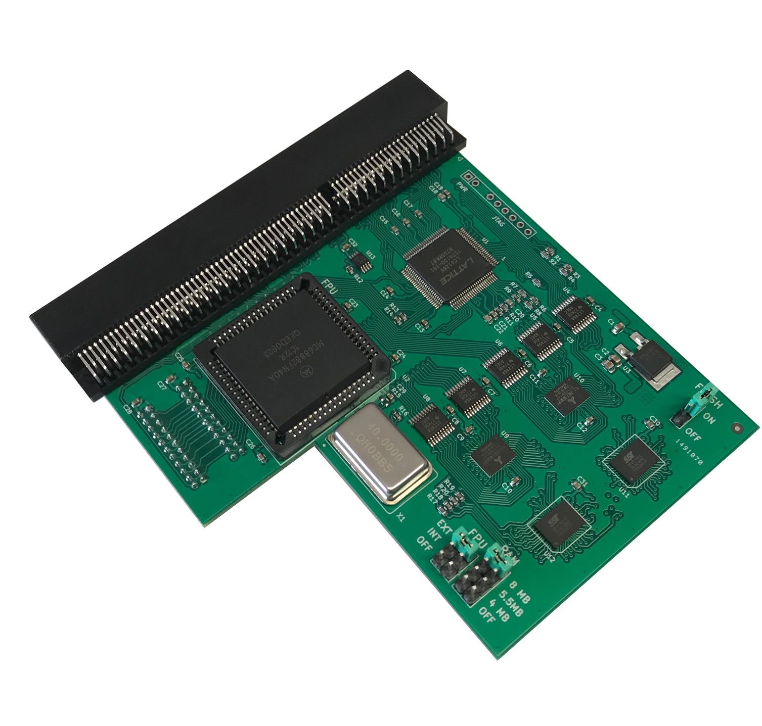 Memory can be configured to 4MB, 5.5MB or 8MB Fast RAM using on-board jumpers or early boot menu.