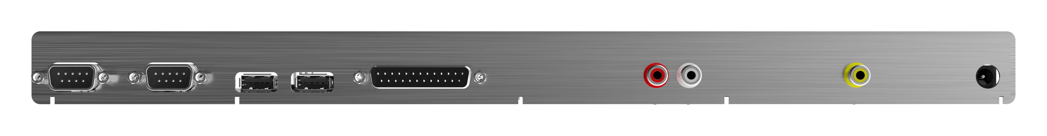 The A1200NG motherboard fits into original Commodore 1200, Escom 1200 and reproduction desktop cases. The ports align with the holes in the case using the supplied backplate.