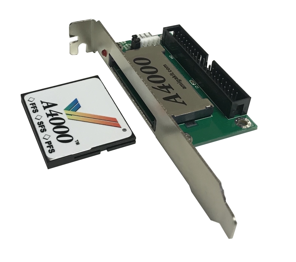Adapter is not hot pluggable. Amiga must be powered down first before removing or installing CF cards. Amiga 4000 shown in pictures are not included and for illustration purposes only. A4000 is a trade mark of AmigaKit Ltd.
