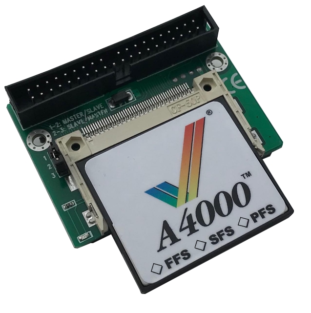 This brand new 4GB CF hard disk drive is ideal for a desktop Amiga A4000™. It is silent, low power and fast alternative to a conventional hard disk drive.