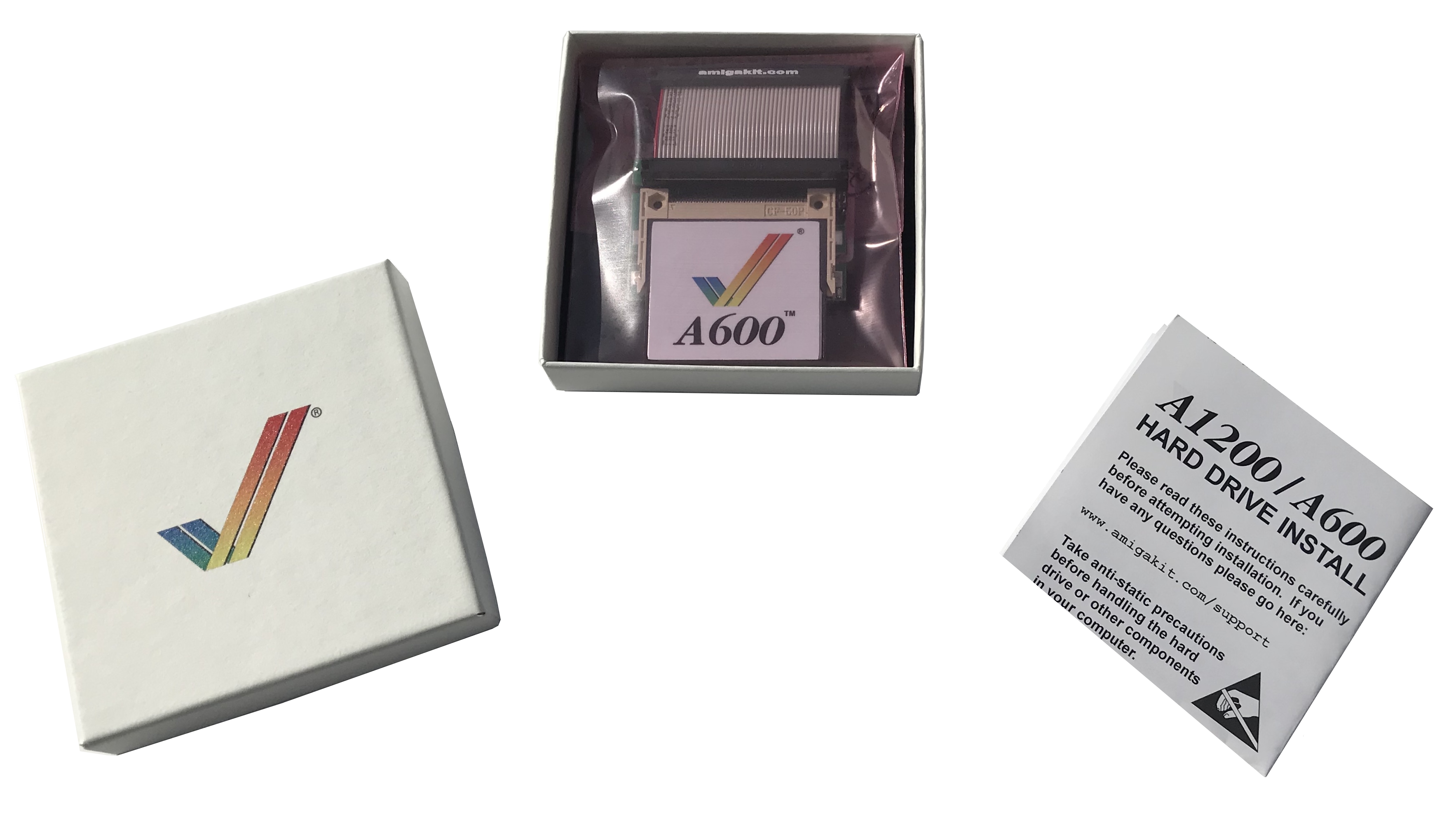 This brand new 4GB CF hard disk drive is ideal for a desktop Amiga A600™. It is silent, low power and fast alternative to a conventional hard disk drive.