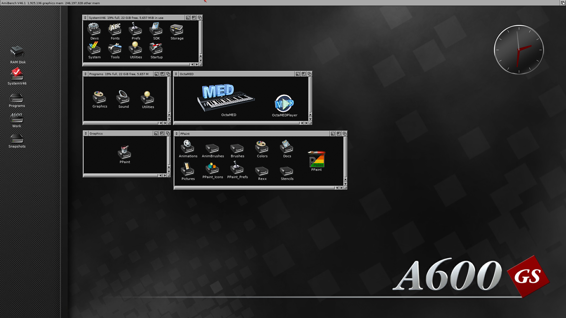 AmiBench: 1080p screenmode with 32-bit icon set. Run Classic 68k programs.