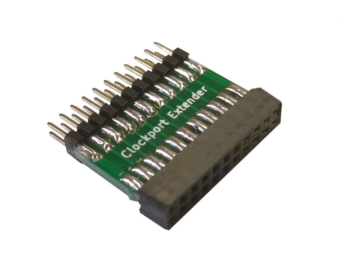 For using devices connected to the Amiga 1200 clock port when FastATA 1200, Phase 5 BVision and other similar devices are blocking access to the 22-pin clock port pin header on the motherboard.