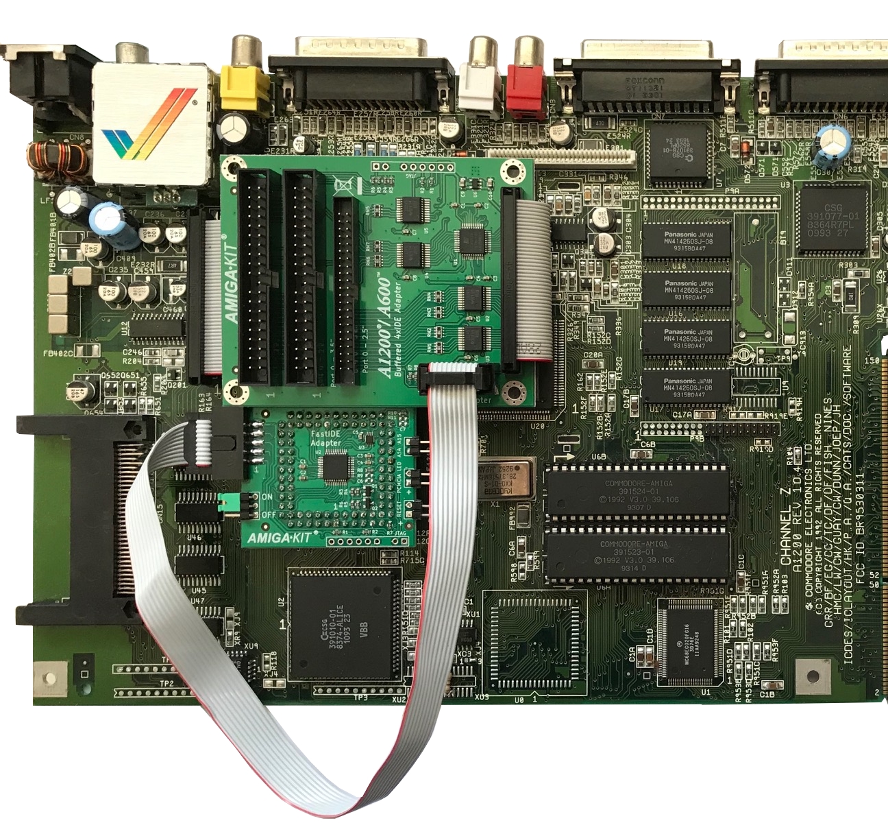 This adapter simply plugs onto the top of the Gayle chip and connects to the buffered IDE interface with the supplied ribbon cable.