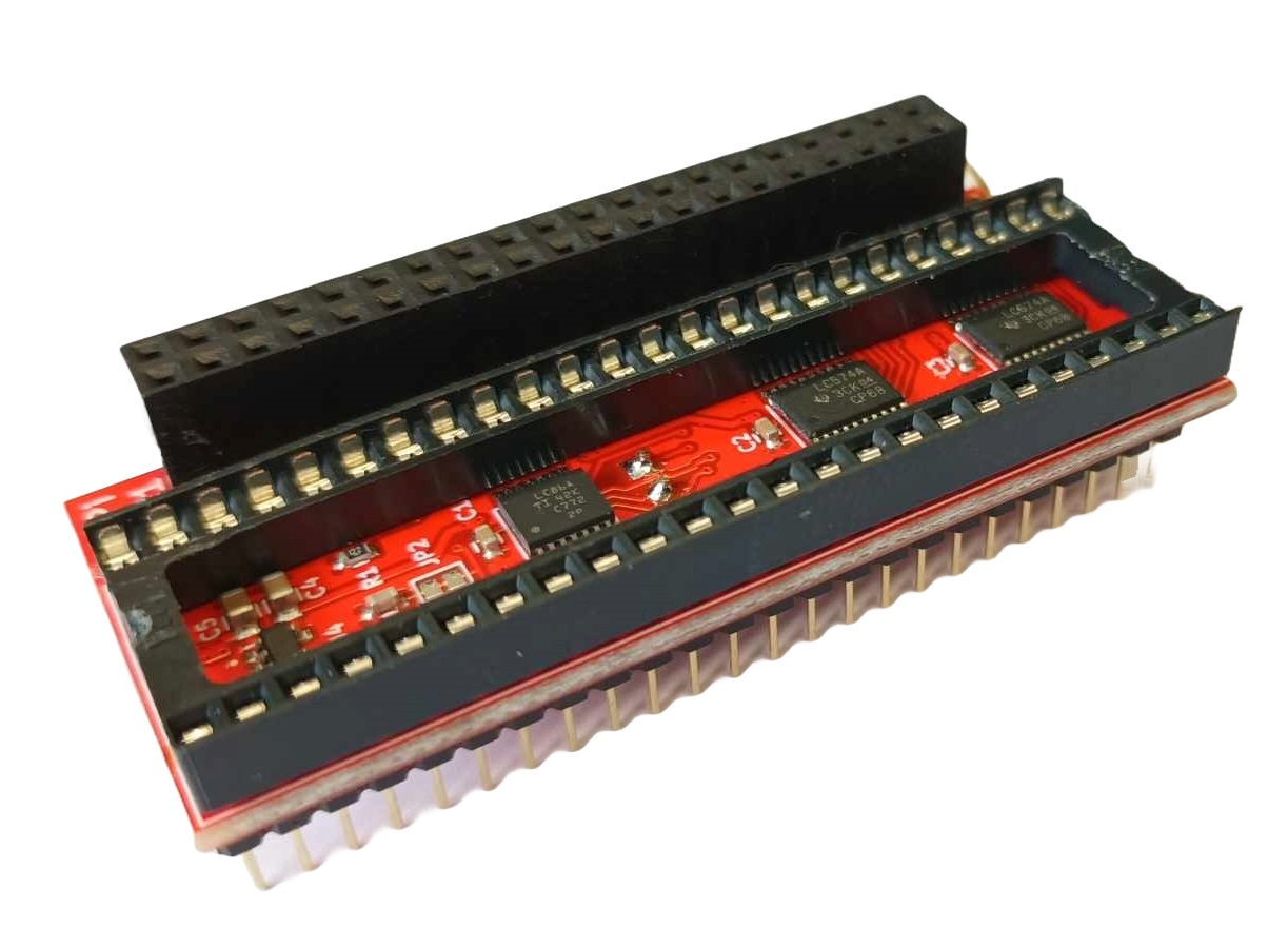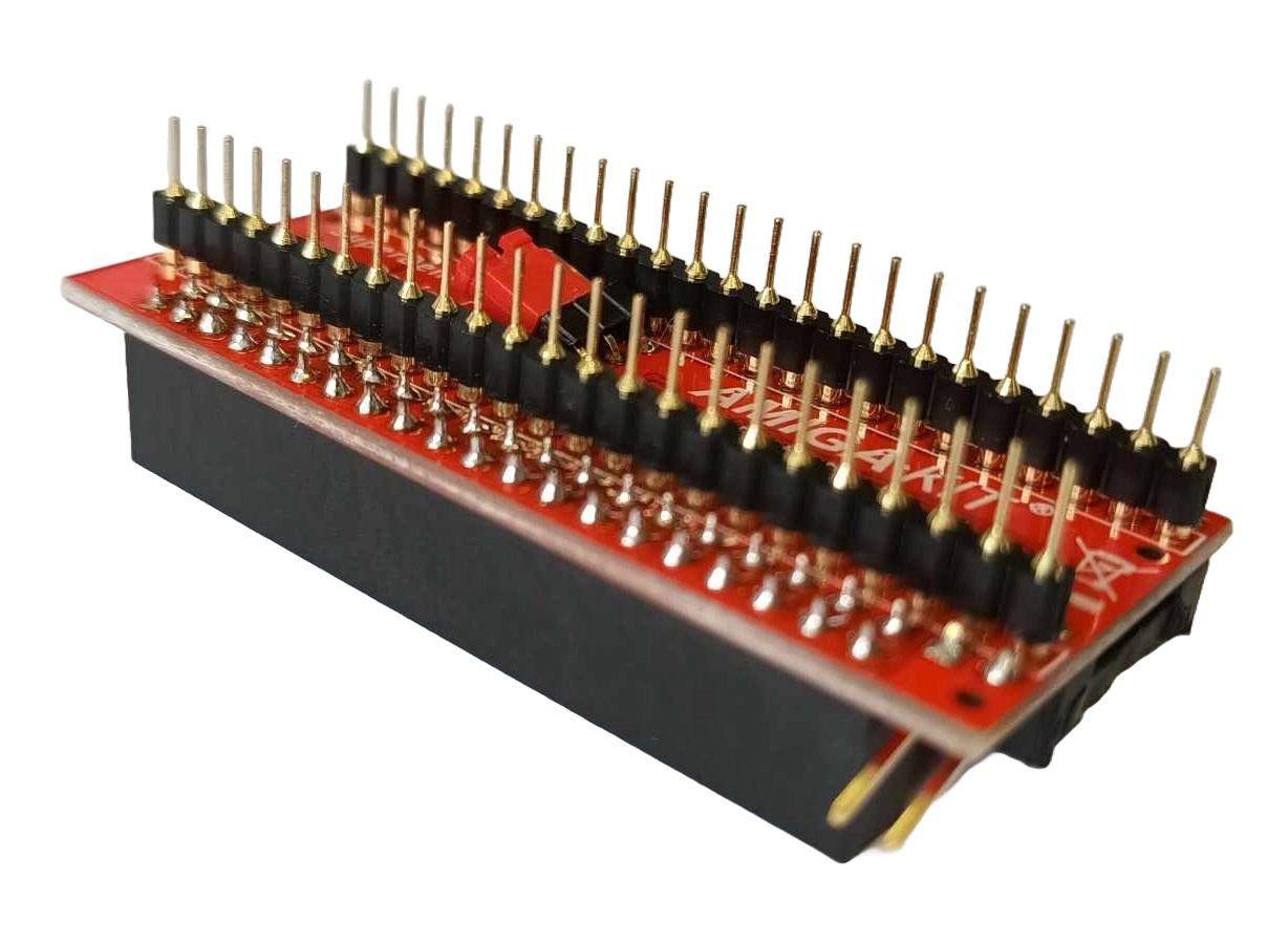 This adapter is plugged into the Denise socket on the Amiga 500 motherboard and in turn the Denise chip is piggybacked into the 48-pin socket on the adapter board. We offer an optional RGB2HDMI Right Angled Relocator which positions the Raspberry Pi Zero to the right of the Denise chip. This is useful to use when other expansions occupy the same space around the Denise chip.
