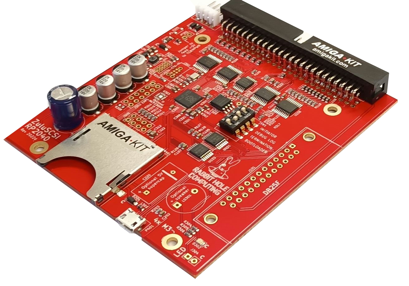 ZuluSCSI RP2040 is a new member of the ZuluSCSI product family, and is powered by the Raspberry Pi Foundation's RP2040 microcontroller, a dual-core 133MHz ARM Cortex-M0+ processor. Supports synchronous and asynchronous transfers, with read speeds up to eight megabytes/second. A SCSI controller with FAST SCSI and synchronous mode is required to achieve maximum speeds.